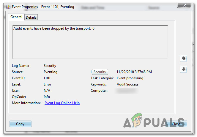 Some Windows users have discovered a lot of consecutive ‘Audit Events Have Been Dropped By The Transport.0’ event errors via Event Viewer. Most affected users are reporting that new instances of this error appear as the system is running. This issue is confirmed to occur on Windows 7, Windows 8.1, and Windows 10.