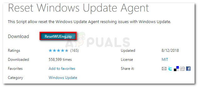 - Open your default browser and visit the download page for the Reset Windows Update Agent script.