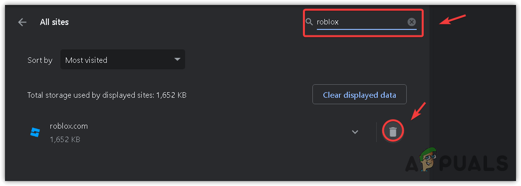 - Search for Roblox, click the delete icon next to it, then click Clear.
