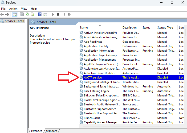 - Find the AVCTP service and double-click it.