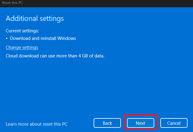 - The reset may take a while to finish, but your issue should be resolved after it completes.