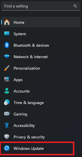 - In Settings, go to the Windows Update section on the left side.