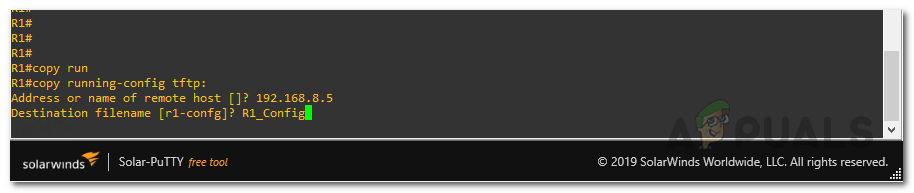 Entering Router Config Filename - Your router configuration is now backed up! You should see your configuration file in the root directory of your TFTP server.