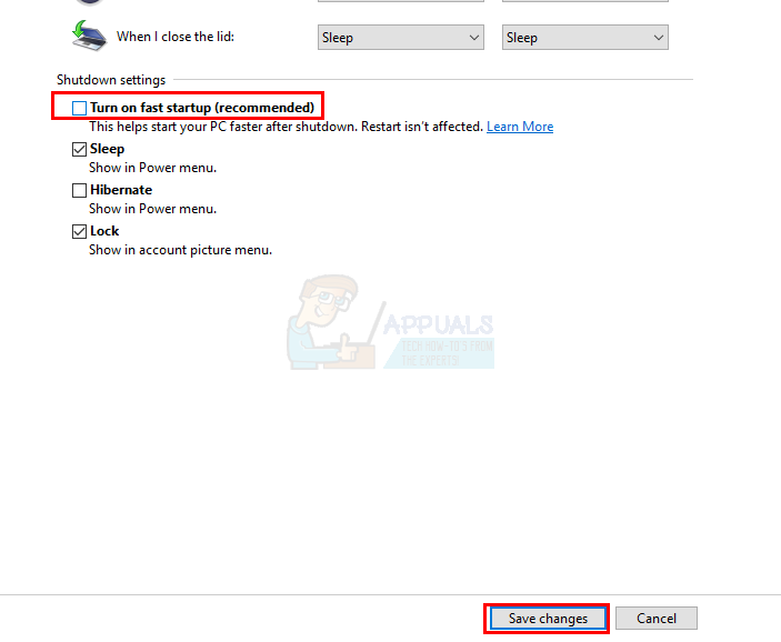 - Uncheck Turn on fast startup (recommended) under Shutdown Settings.