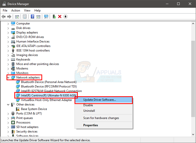 - Right-click the device/adapter and choose Update Driver Software…