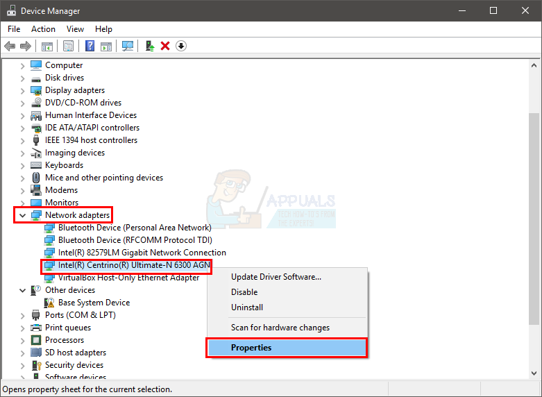 - Right-click your device and select Properties.