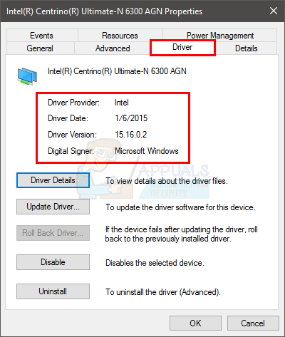 - Select the Driver tab and check if the version matches what you downloaded. If not, close the properties window.