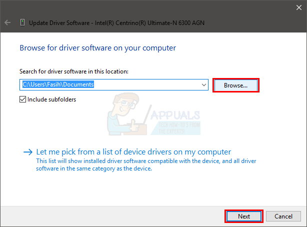 - Click Browse, find the driver you downloaded, select it and click Open.