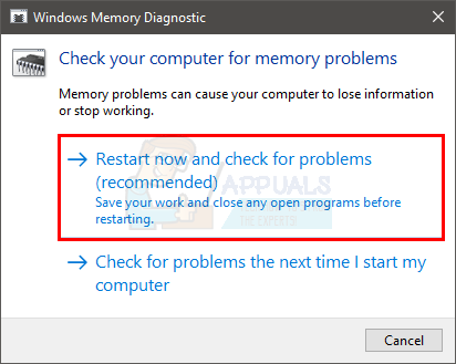 - Click Restart now and check for problems (recommended).