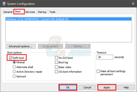 - Check the box next to Safe Boot.