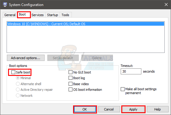 - Uncheck Safe Boot.
