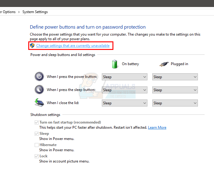 - Click Change settings that are currently unavailable.