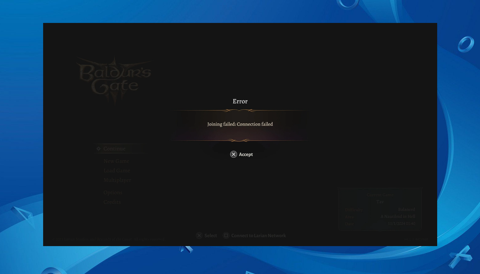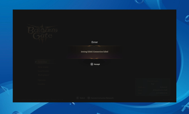 Fix: “Joining failed: Connection failed” Baldur’s Gate 3 on PS5