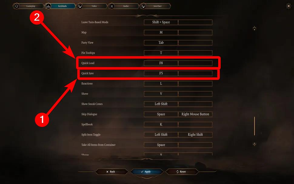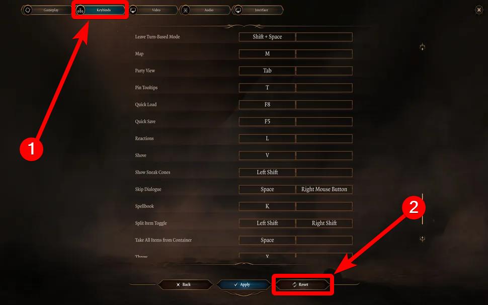 Resetting key bindings can fix issues where the Escape key is not responding due to conflicts with other keys or software. Follow these steps to reset key bindings in Baldur’s Gate 3: