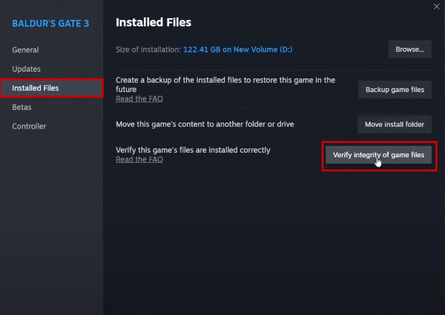 - Select Verify Integrity of Game Files. Steam will scan for and fix any corrupted or missing files.
