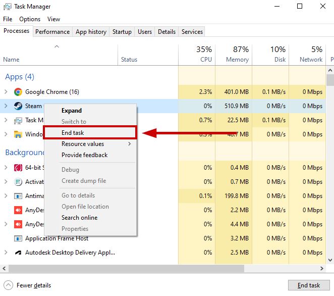 - Press Ctrl+Shift+Esc to open Task Manager.