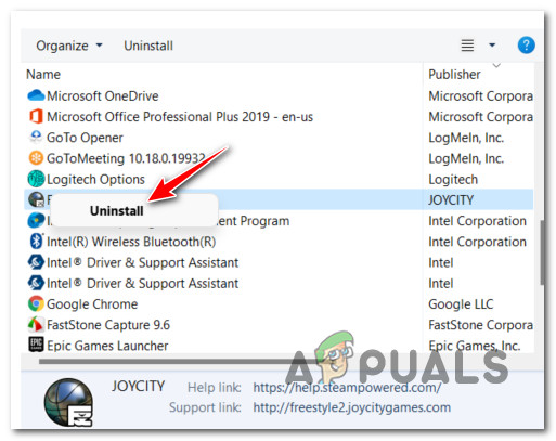 - In the Programs and Features window, scroll through your installed programs until you find the game that’s causing problems. Right-click on it and choose Uninstall.