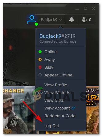 - Open the Battle.Net application. Click the down arrow next to your account name in the top-right corner, then click Log Out.