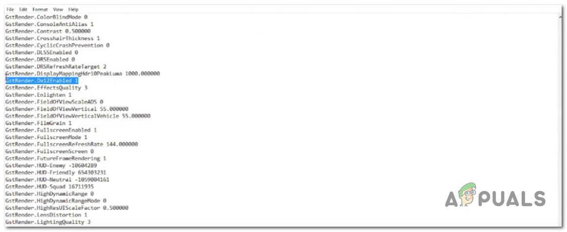 - Scroll to the bottom of that file until you find GstRender.Dx12Enabled.