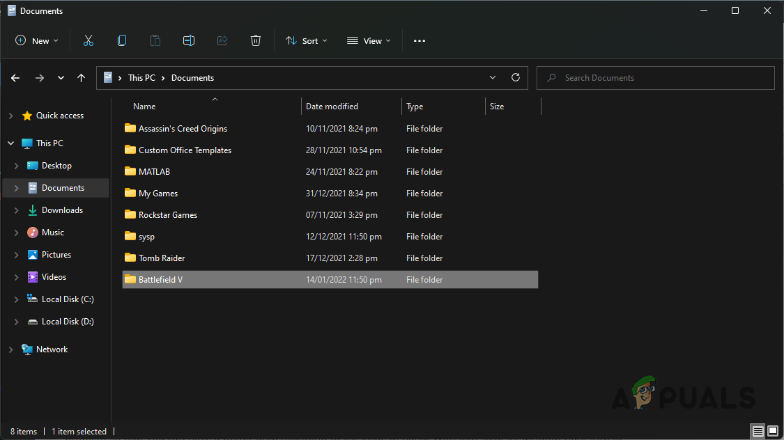 Navigating to My Documents Folder - Once there, go ahead and right click on the Battlefield 5 folder and change its name to something else by clicking the Rename option. Alternatively, you can also just delete the folder.