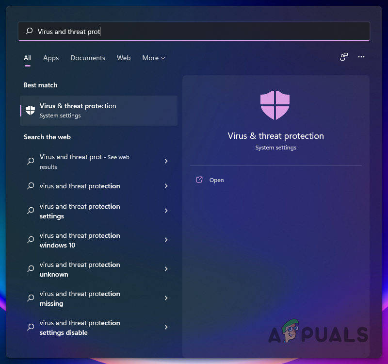 - To start off, open up the Start Menu and search for Virus and Threat Protection. Open it up.