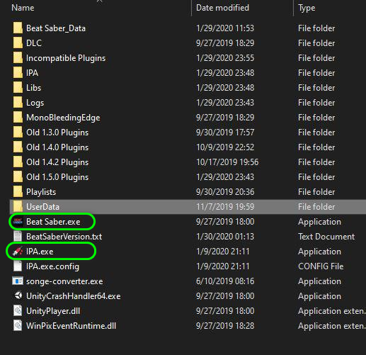 - If the issue was not resolved, exit the game, go to your Beat Saber folder, and run IPA.exe as an administrator, then start the Beat Saber game again.