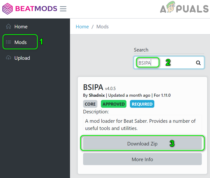 - If mods still aren’t working, go to the Beats Mods website and search for BSIPA.