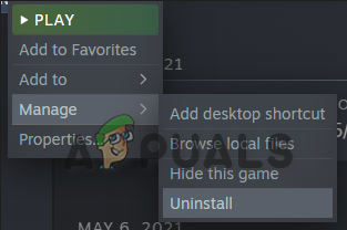 - Go to Manage, click on Uninstall and wait until the removal is finished.