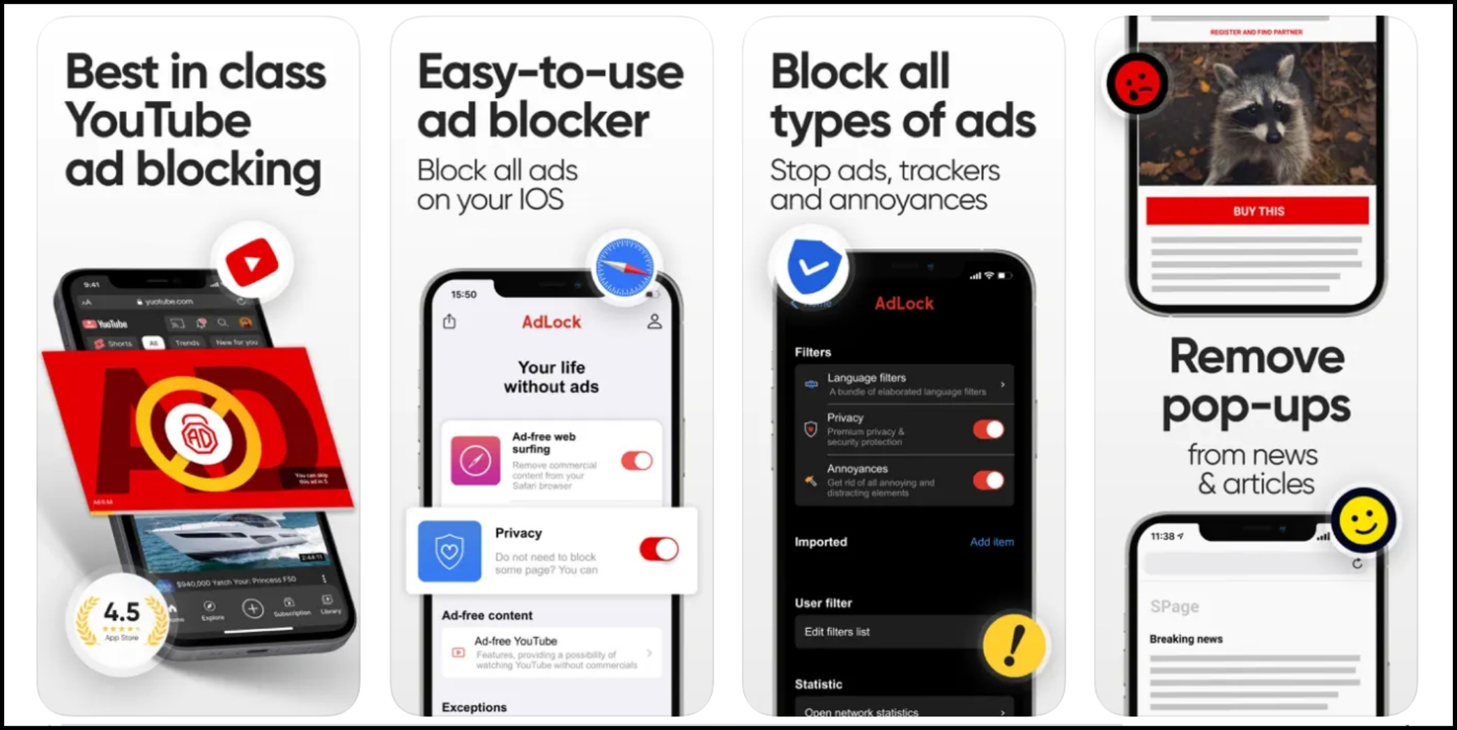 AdLock app offers an affordable way for Apple device users to block all types of ads on iPhones and iPads. It prevents cookie pop-ups, banners, autoplay videos, trackers, and even YouTube ads, boosting web surfing speeds and enhancing privacy.