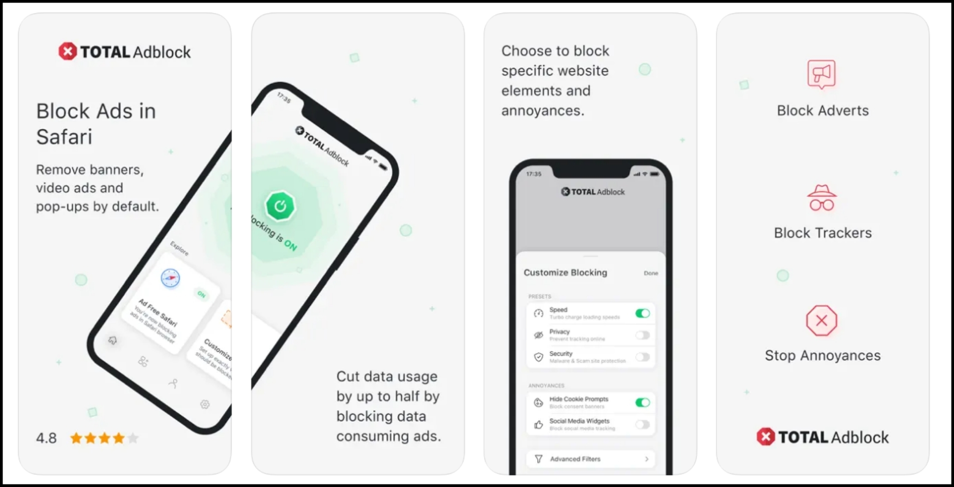 Total Adblock offers in-app purchases from $7.99 for basic options to $53.99 for premium features, allowing you to customize your ad-blocking experience as desired.