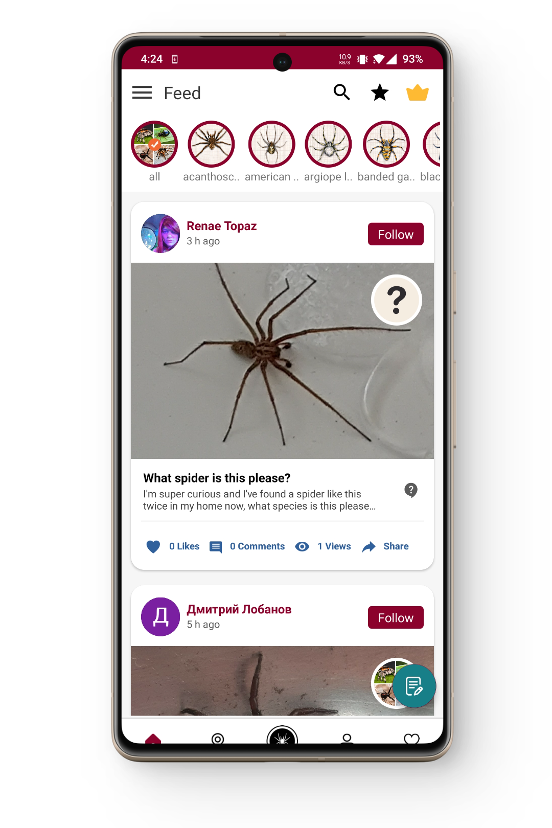 Insect Spider & Bug Identifier is a user-friendly app perfect for quickly identifying a wide range of species. Just capture a photo of the insect and let the app analyze it. It covers species such as butterflies, beetles, bees, ants, spiders, and more. For students or enthusiasts, you can search by name to access in-depth details, including habitat, common and scientific names, and high-quality images.