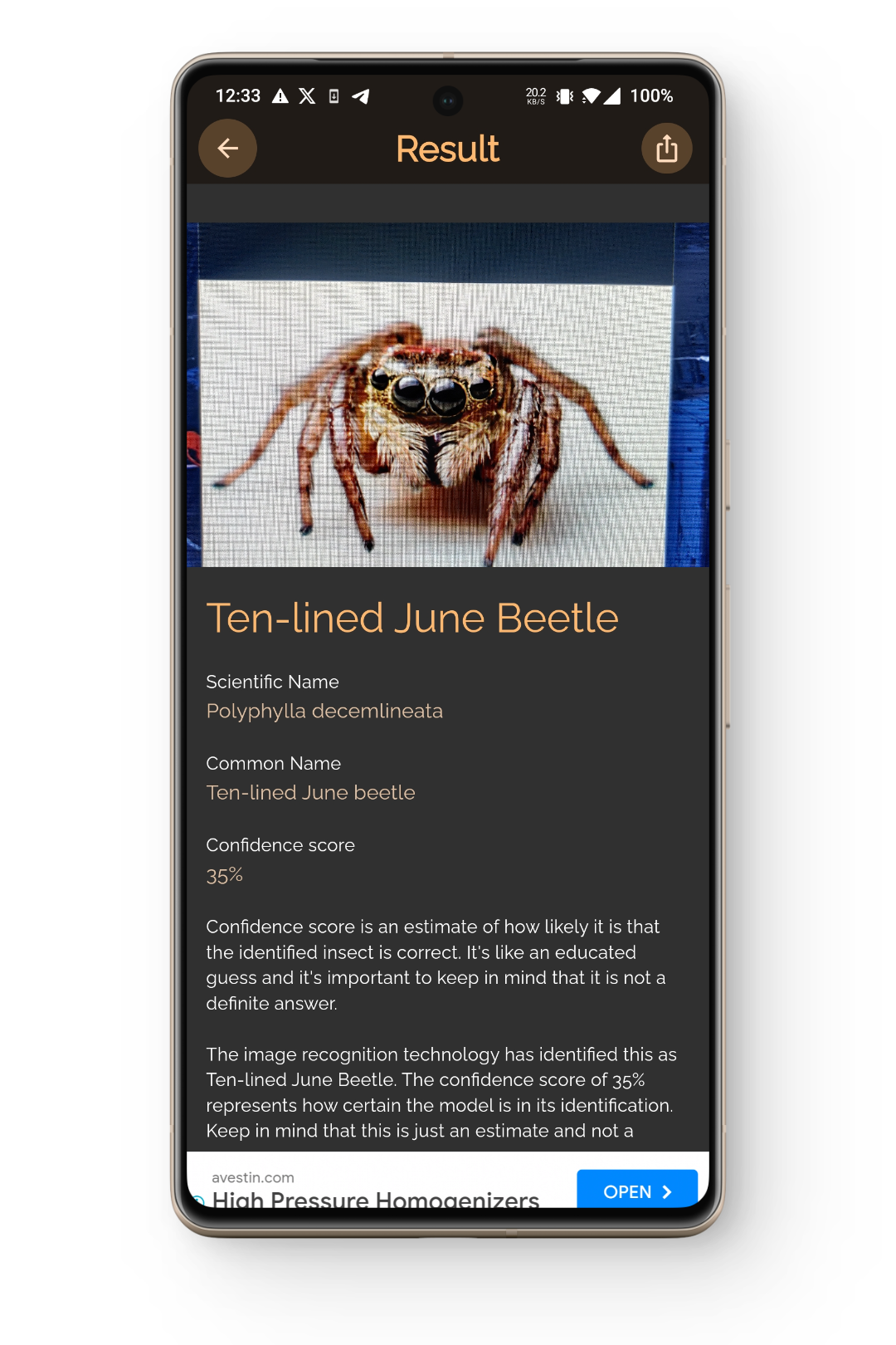 The app offers unlimited free scans and provides useful guidance on how to safely interact with identified insects. The only notable downside is that it requires an active internet connection to function.