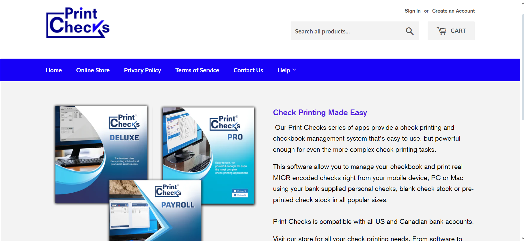 You can use your bank’s personal checks, blank check stock, or pre-printed check stock in different sizes. The software is designed to work with all U.S. and Canadian bank accounts, making it widely compatible. You can find everything you need for check printing in their online store, including software and pre-printed checks.