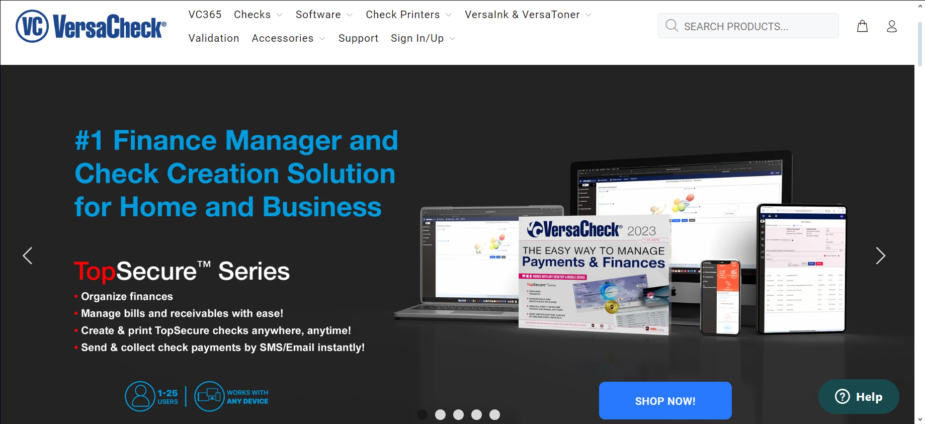 VersaCheck is a complete check writing and printing solution that offers everything you need to format and print checks at home or for your business. This includes business check printers, MICR ink and toner, blank check stock, and check writing software.
