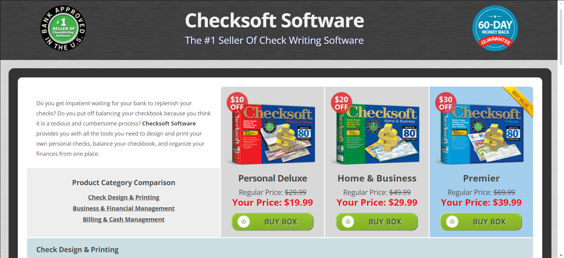 Checksoft Software is an all-in-one solution for personal finance management. It enables you to design and print your own checks, offering over 20 business and payroll check templates and 100+ personal check designs.