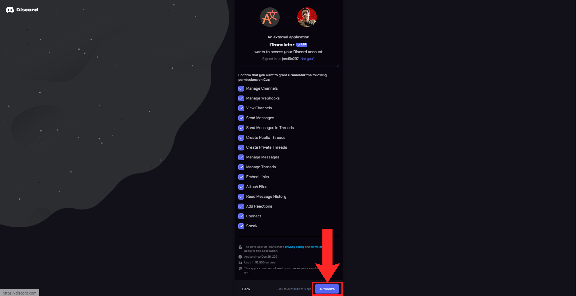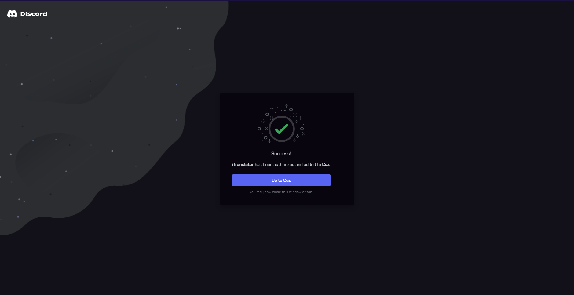Click on “Authorize” - You’ll see a message that iTranslator has been added to your server. Click the button to open your server or open your Discord app.