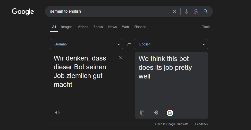A translator bot in Discord translates languages within a server. Multiple communities on Discord have members from different nationalities. Not all members may be fluent in English, so a translator bot helps bridge the language gap by translating messages.