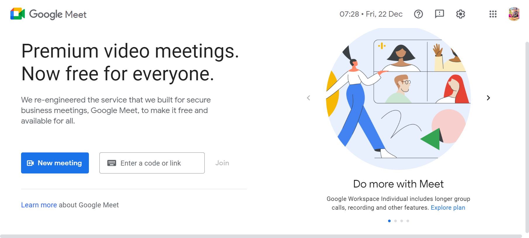 Google Meet is a convenient tool for online meetings and connecting people worldwide. As part of Google Workspace, it allows easy participation in video conferences and calls from a calendar event or email invite. Its mobile app facilitates quick meeting access with just a tap.