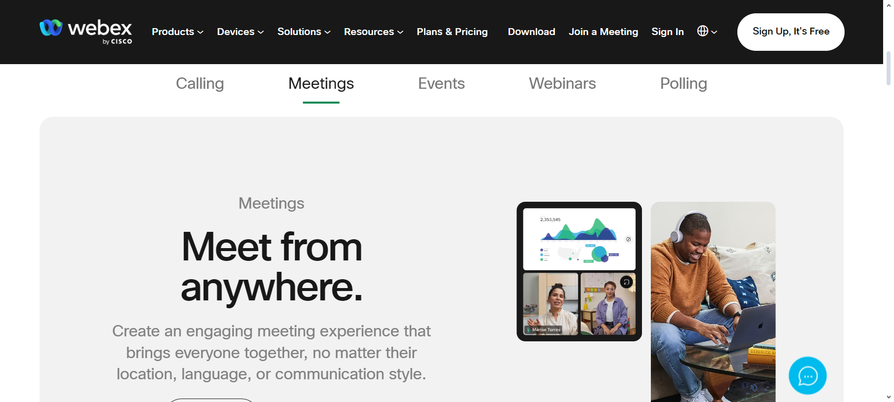 Cisco Webex is a well-established video conferencing app within Cisco’s larger ecosystem. It is designed for various types of meetings, whether conducted remotely or in person. The platform is versatile and suitable for hosting everything from small meetings to large webinars and events, both virtual and in-person.