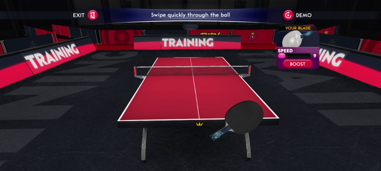 PPF has a career mode along with multiplayer. The career mode has you play competitive matches. The more you win, the more fans you gain, allowing you enter and play at the game’s highest levels. Access to higher levels means you get better gear, paddles, shoes, balls and accessories.
