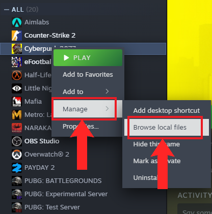 - You can open the installation folder for any game by right-clicking it in your Steam Library, selecting Manage, then Browse local files. Or, just go to this path in File Explorer: