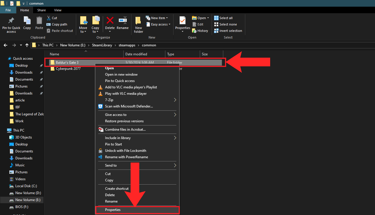 Open up the installation folder - Right-click the Baldur’s Gate 3 folder and choose Properties.