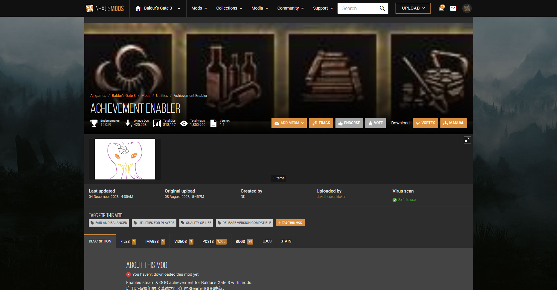 For many users, the culprit was the Achievement Enabler mod—but this mod has since been updated to fix the issue. Since there are so many mods for BG3, it’s important to double-check that any mods you download are up to date and compatible with your current version of the game. Outdated or incompatible mods can easily cause launching issues.