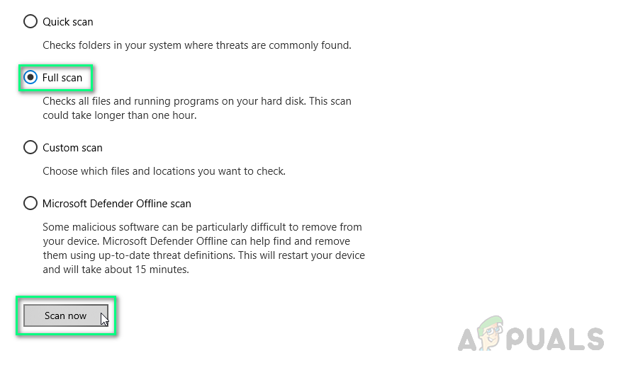Running Full Scan - Windows Defender will start scanning your entire system. This might take a while, so let the scan finish.