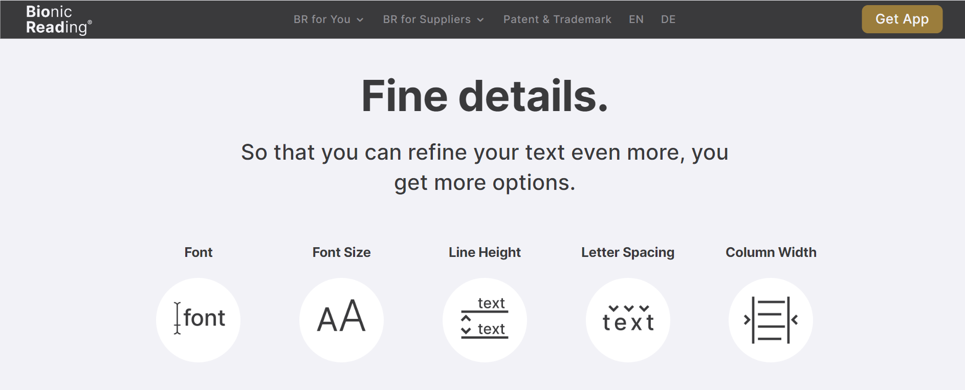 Bionic Reading offers various customizable features that cater to individual preferences and needs. Users can adjust the level of emphasis on words, change fonts, modify background colors, and control brightness levels, making reading a more comfortable and personalized experience.