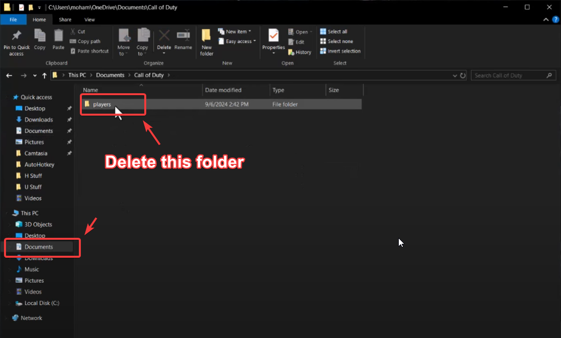 - Go to your Documents folder on the left, then open the Call of Duty folder.