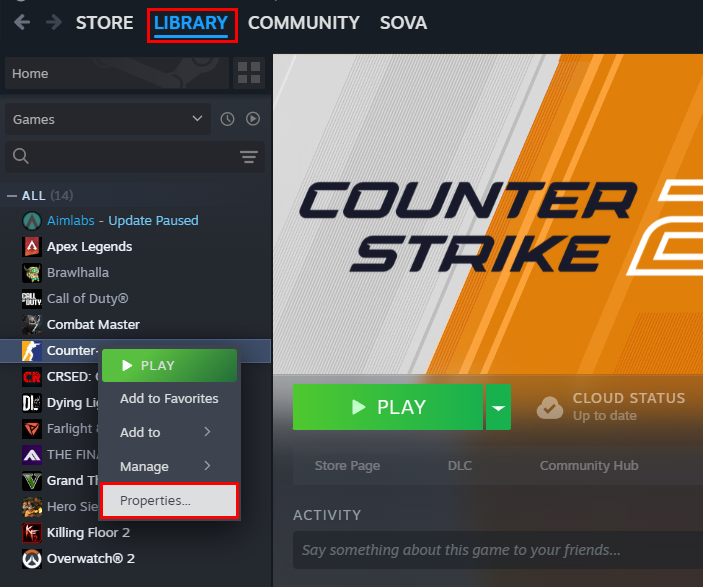 - Navigate to your Library, right-click on the game, and select Properties from the menu.