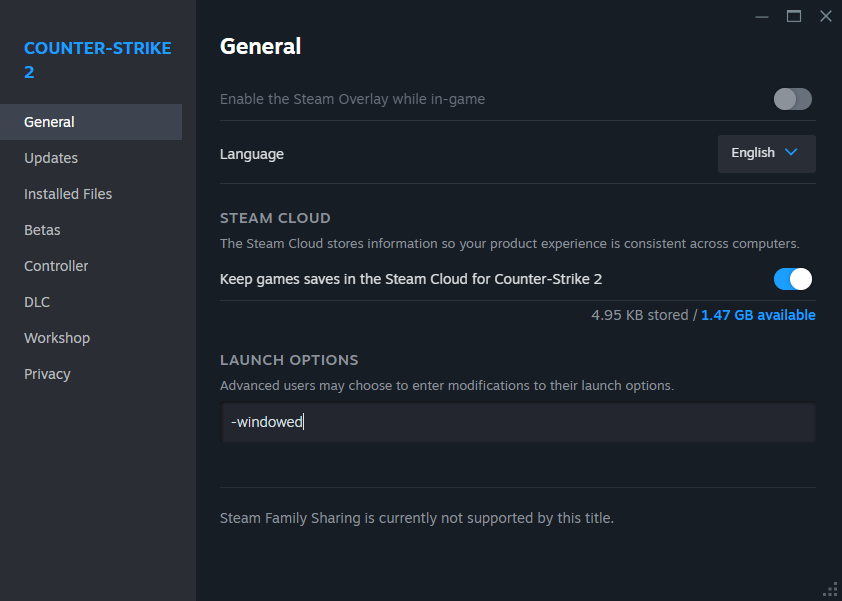 Under these circumstances, you will need to apply a launch option that forces the game to start in windowed mode regardless of the in-game settings. The following steps will enable you to do this:
