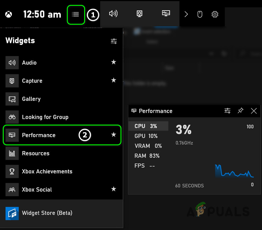 Open the Xbox Game Bar - Click the Widget menu (next to the clock) and select Performance (or try the Party Chat overlay to test).