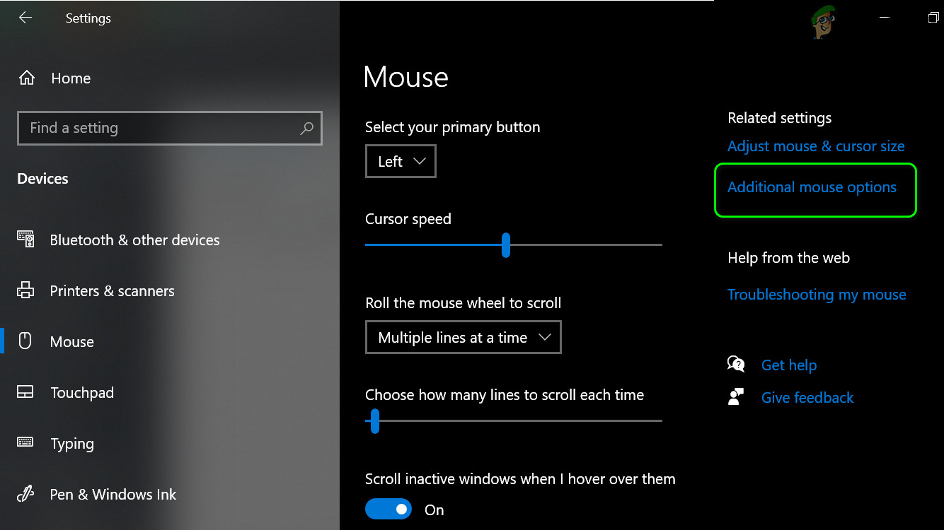 Open Mouse Settings - On the right, click Additional Mouse Options.